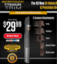 Micro Touch Titanium Trim with its 5 attachments and 2 AA batteries is priced at $29.99 + $4.99 Shipping and Handling. The Micro Touch Titanium Trim is available at the official website TitaniumTrim.com only.